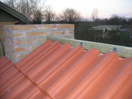 ![]() 27-nov-2005: ...and a length of wood is installed between the upper tiles, on which to attach the ridge tiles. |
