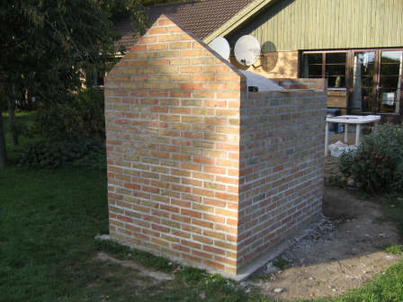 20-oct-2005: The chimney is finished - well almost: I haven't made the final decision on how cover it, but I'll probably make a brick arch - and I might add another brick layer. |