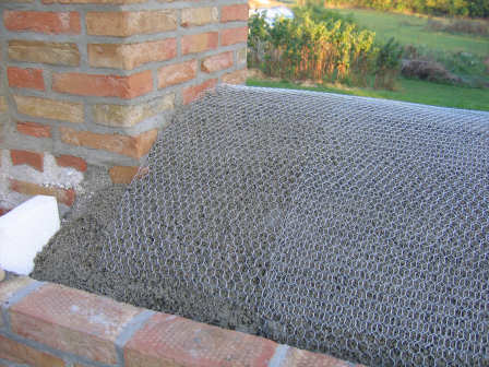 ![]() 9-oct-2005: The bricks around the door arch are laid - very delicate brickwork was needed above the arch! |