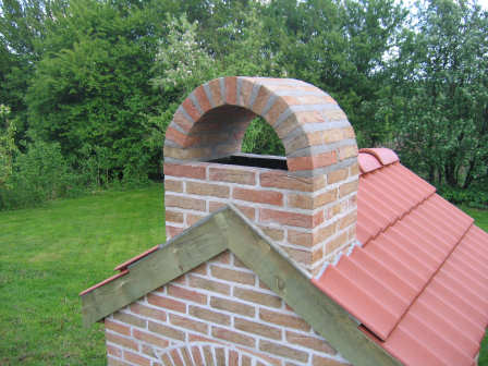 ![]() May-2006: The arch is slowly going up. It is rather tricky work because the back of the chimney is difficult to reach. |
