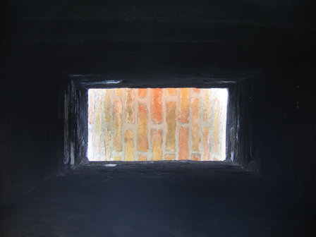 ![]() May-2006: A view up through the chimney before the cover is sooted by the first firing... |