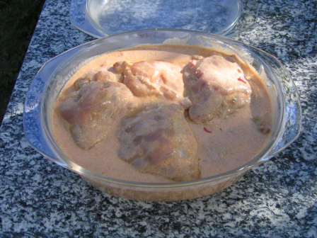 ![]() This was our very first attempt to cook in the tandoor. Chicken thighs were marinated in a traditional tandoori marinade (but without food colour). |