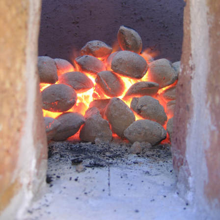 ![]() The firing is controlled with the airhole opening and the lid. Normally, the airhole is only fully opened when ash is removed. |